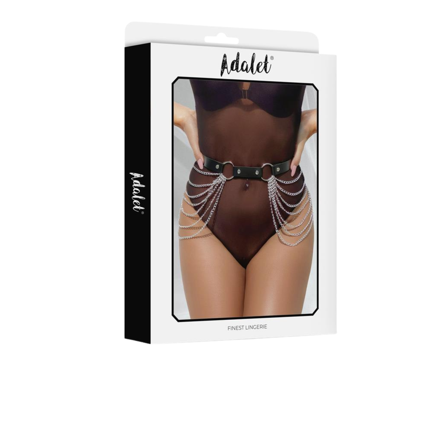 As tiras ajustam-se à cintura com perfeição, enquanto as correntes metálicas deslizam com cada movimento, criando um jogo de sombras e luz sobre a pele. Sente a combinação perfeita entre firmeza e liberdade, que transforma qualquer look num statement de atitude e sensualidade.