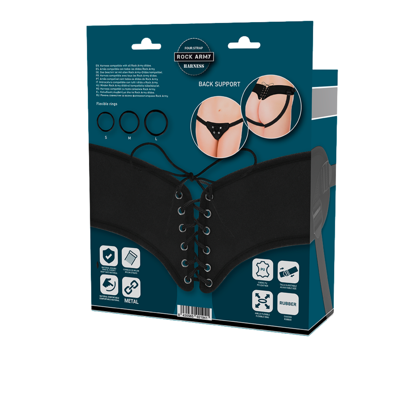 O arnês Rock Army combina ajuste perfeito e flexibilidade total, graças aos seus três anéis suaves, que se adaptam ao teu corpo e ao teu ritmo. Sente cada movimento intensificar a conexão, enquanto exploras novas formas de prazer com confiança e liberdade.