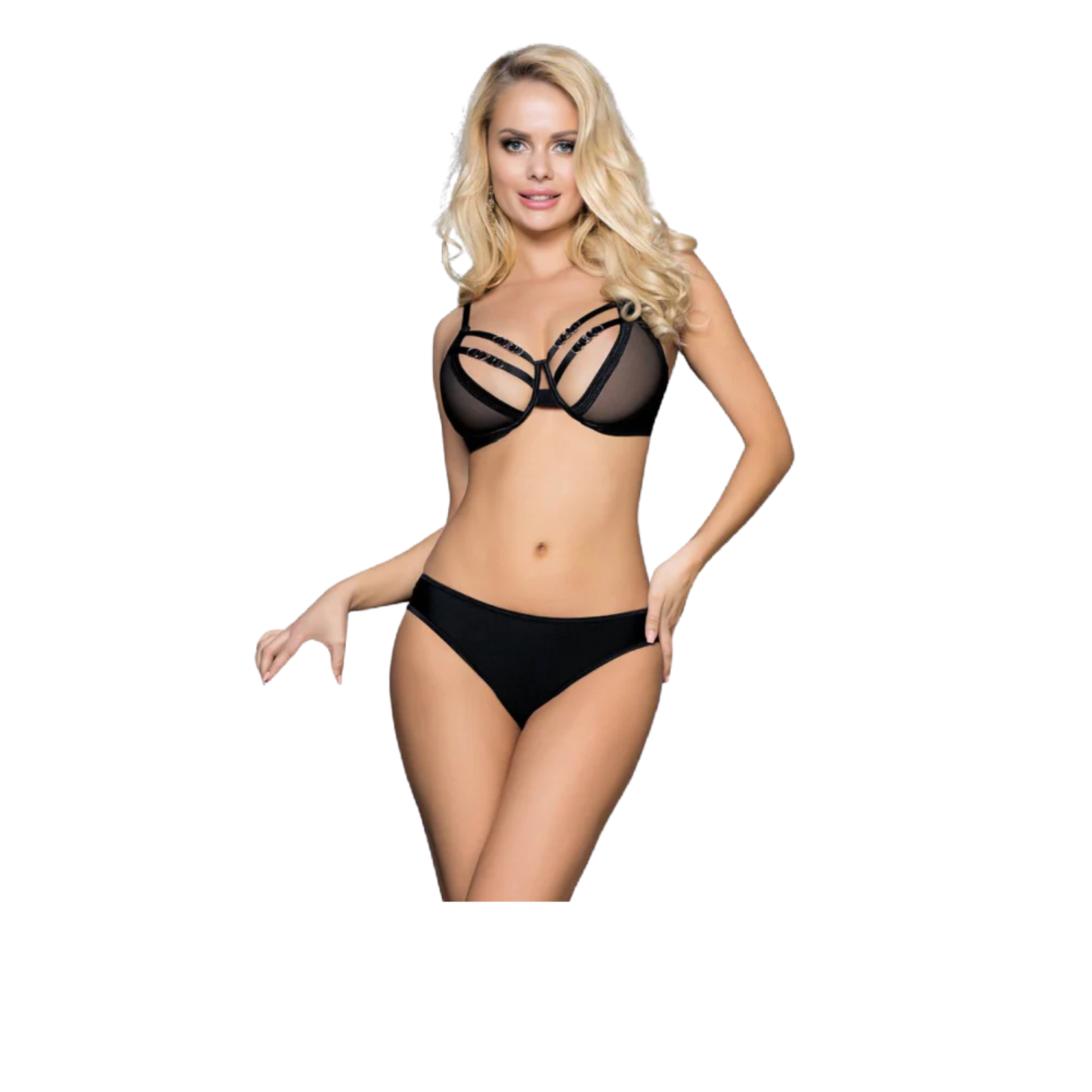 Adiciona Chilirose | Conjunto 4 Peças com Soutien, Tanga, Cinto de Ligas e Meias de Rede ao carrinho